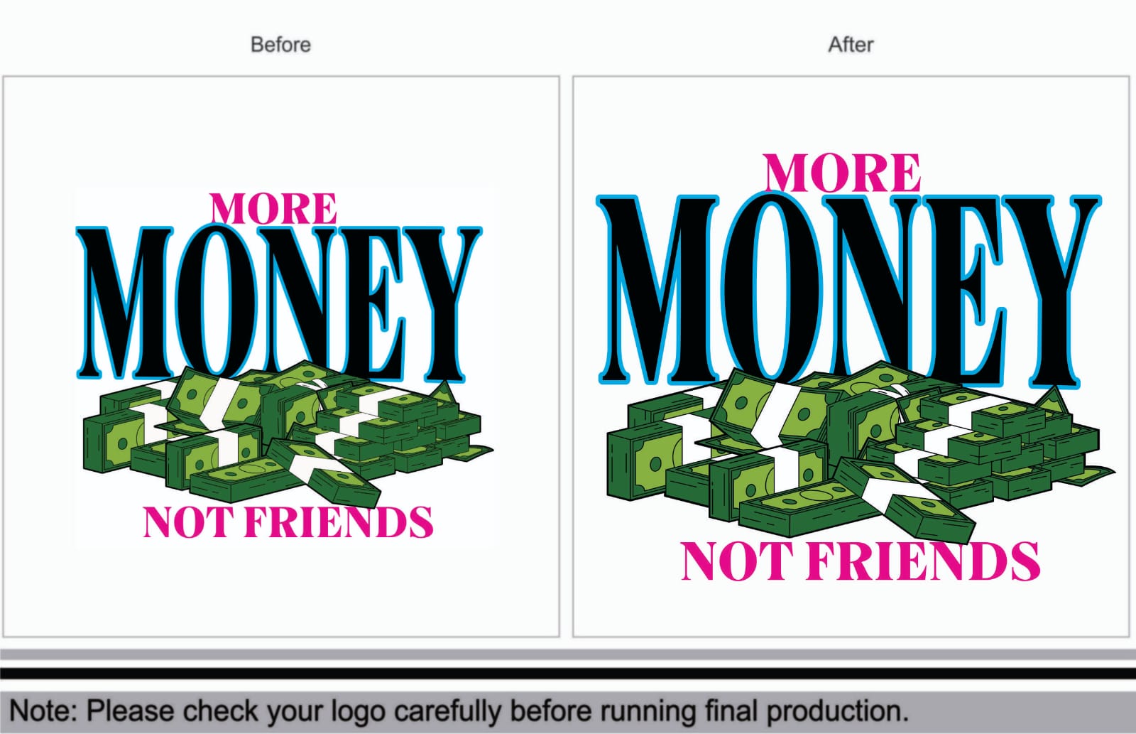 We convert raster images into clean, scalable vector files perfect for printing, branding, and merchandise production.